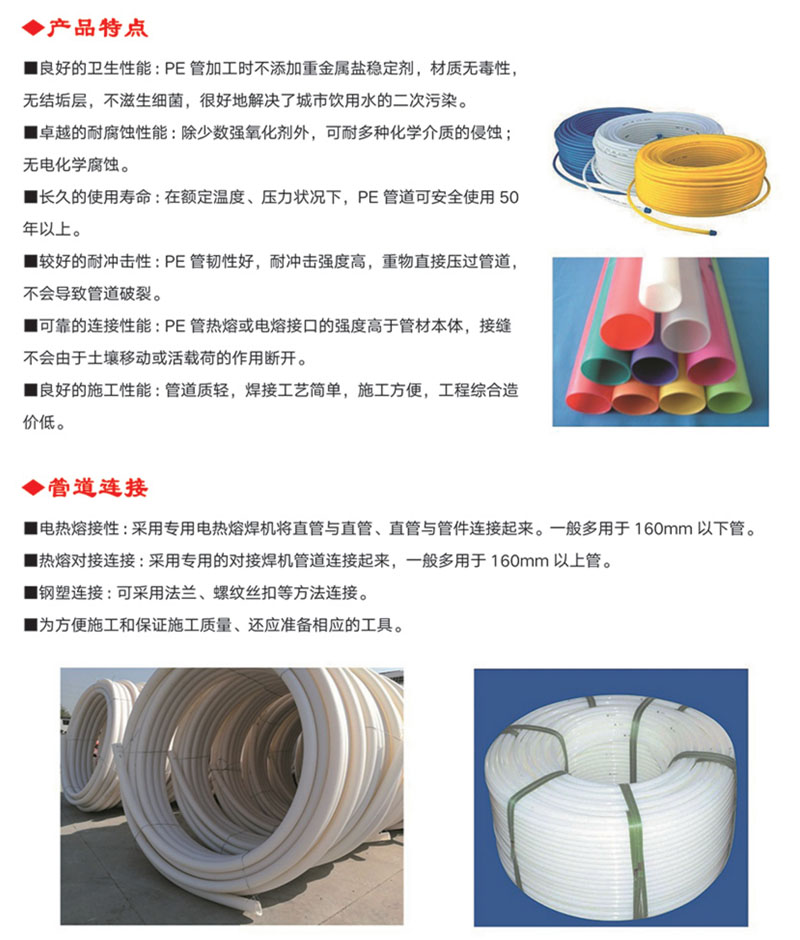 PE支管是一種聚乙烯為主要原料,經(jīng)塑料擠出機(jī)擠出而成的管材,廣泛應(yīng)用于光纖通信電纜、電力工業(yè)、有線廣播電視等工程中需要保護(hù)光纜通信和電線的各種場所,還廣泛用于給排水、石油、化纖、食品醫(yī)藥等領(lǐng)域。其主要支術(shù)指標(biāo):拉伸屈服強(qiáng)度9MPA、斷裂伸長率:200%、電絕緣強(qiáng)度:50HZ,2000V,15MIN不擊穿。